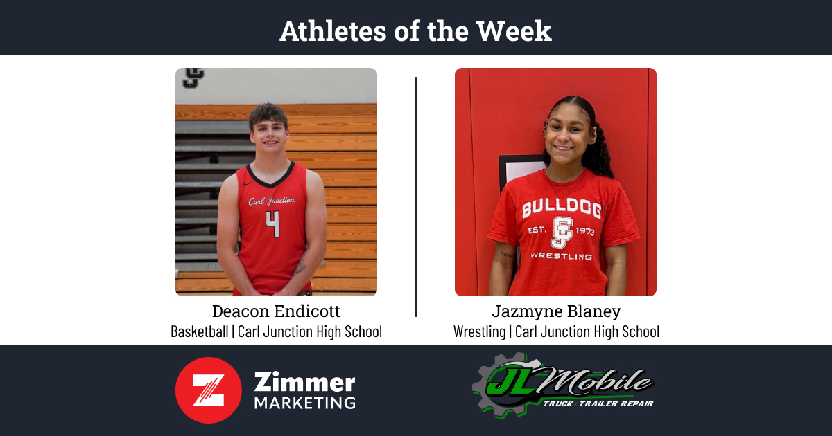 Carl Junction wrestler Jazmyne Blaney and basketball player Deacon Endicott have been named the Zimmer Marketing Male and Female Athletes of the Week brought to you by JL Mobile Truck and Trailer Repair.